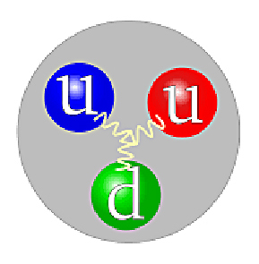To make a hydrogen atom, two up-quarks having two gluons combine with one down-quark having one gluon.