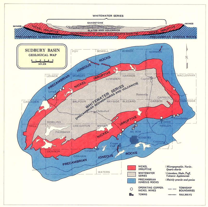 In 1883 when the Trans-Canada railway was built, they discovered the ore body in Sudbury.